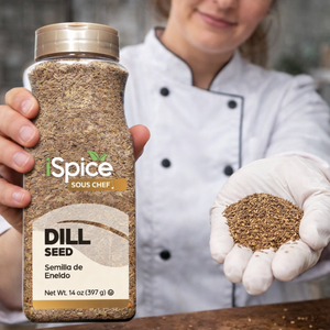 Elevate your dishes with the distinctive flavor of iSpice Dill Seed, a 14 oz food service size of premium, Kosher-certified dill seed. Our dill seed offers a warm, slightly bitter and slightly sweet flavor with a subtle anise-like note.