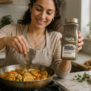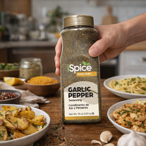 Elevate your dishes with iSpice Garlic Pepper Seasoning, a 19 oz food service size of a premium, Kosher-certified blend of garlic and black pepper. This classic combination delivers a robust and savory flavor that enhances a wide range of dishes.