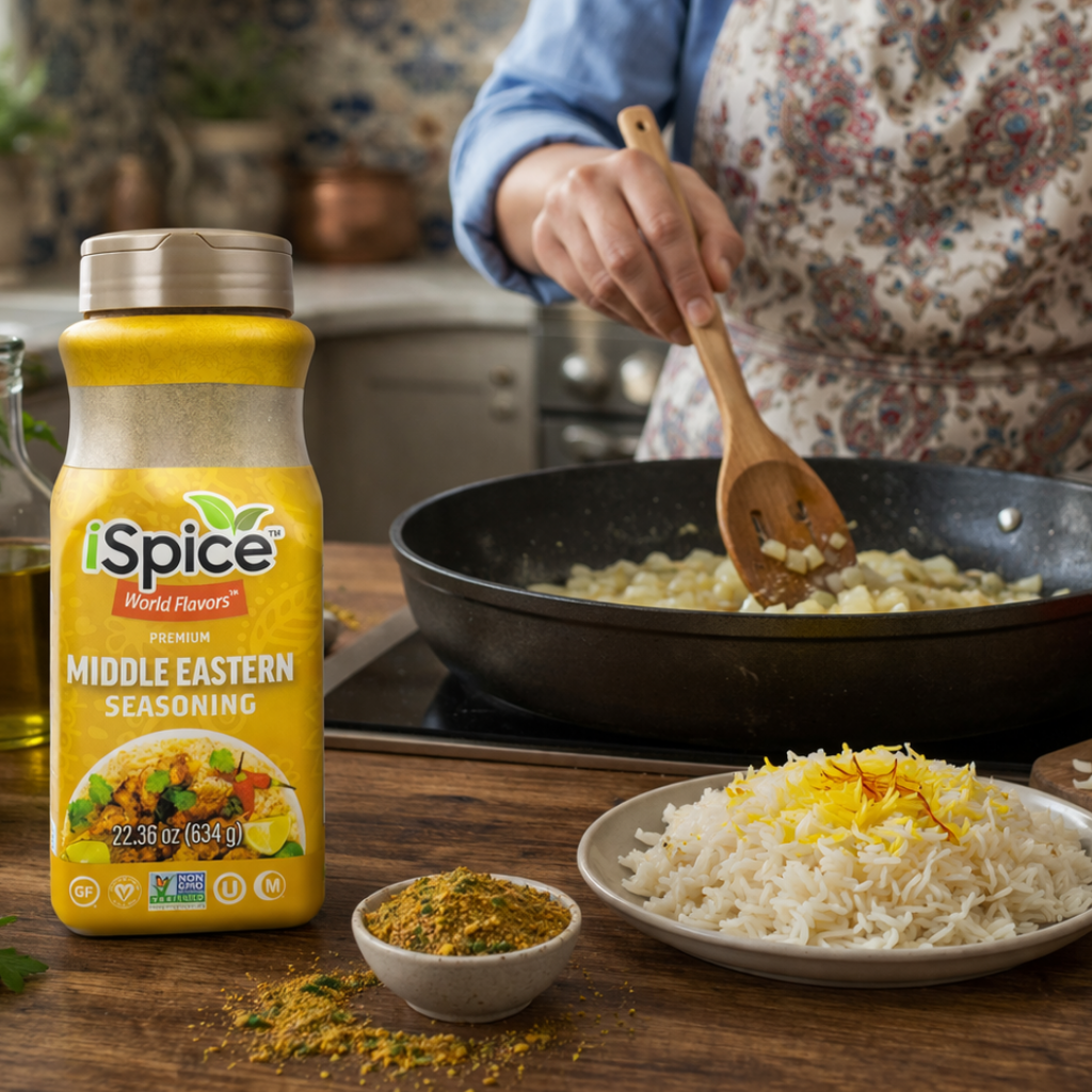 iSpice 22.36 oz Middle Eastern Seasoning Blend is your gateway to the vibrant culinary landscape of the Middle East. This expertly crafted blend combines a harmonious symphony of savory spices like cumin, coriander, cinnamon, cardamom, and allspice, delivering a burst of authentic Middle Eastern flavor to your dishes.