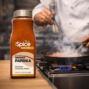 Indulge in the rich, smoky flavor of iSpice Smoked Paprika, a 16 oz food service size of premium, Kosher-certified smoked paprika. Our paprika is carefully smoked over natural wood, resulting in a deep, complex flavor with a touch of sweetness.