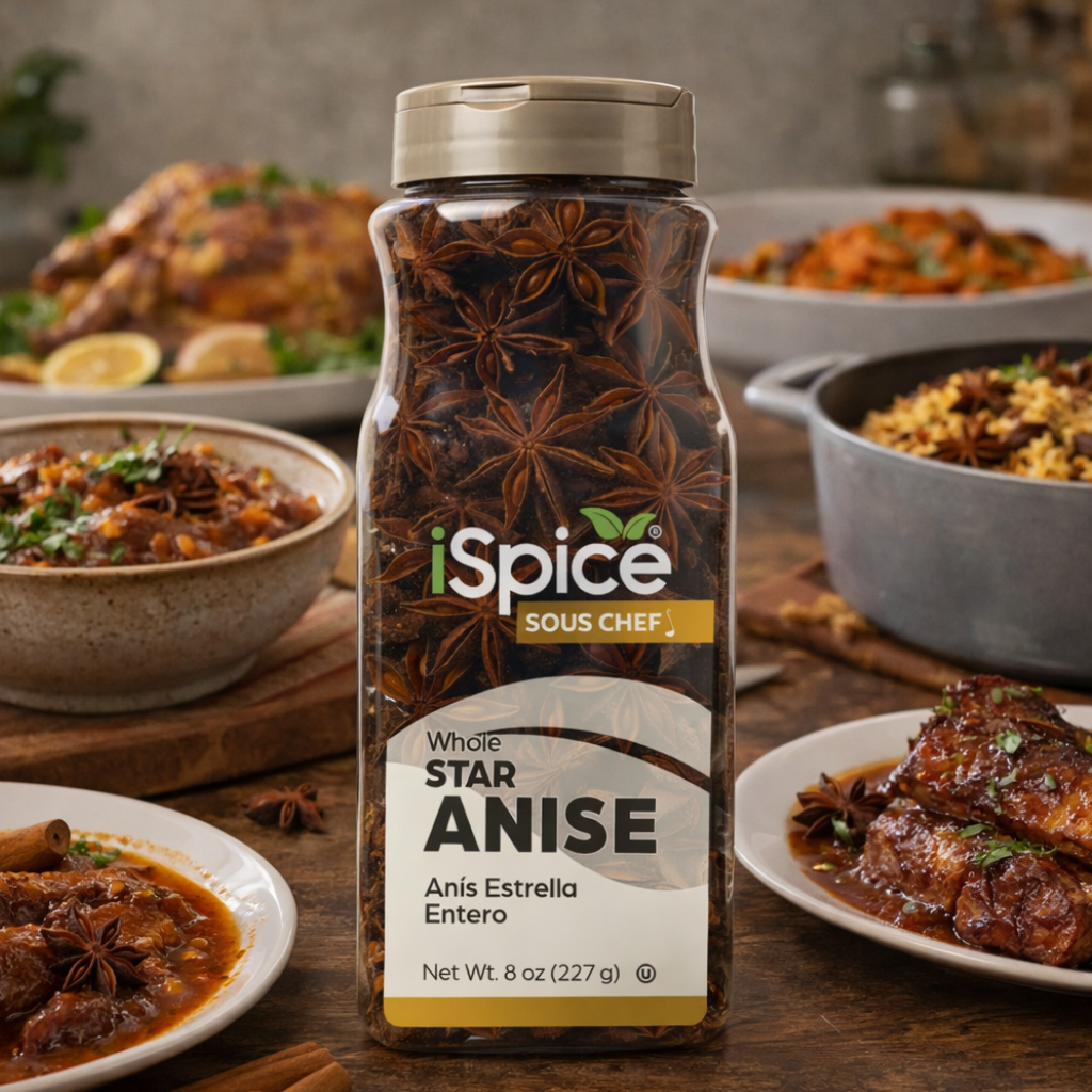 Elevate your culinary creations with iSpice Star Anise Whole, a 2.2 oz food service size of premium, Kosher-certified star anise. These whole star anise pods possess a unique licorice-like flavor and aroma, adding a touch of exotic elegance to your dishes.